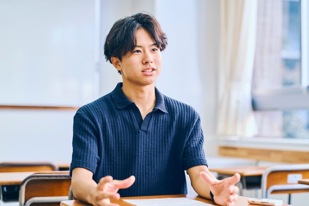 立教新座の考える「リーターシップ」とは、一人のカリスマが集団を率いるのではなく、全員が強みを発揮できる新たな形の「リーダーシップ」です。その学びの一環で、自由選択科目「リーダーシップ・コミュニケーション実践」を履修した篠浦憲哉さんに、履修したきっかけや授業を通じて学んだことについて伺いました。