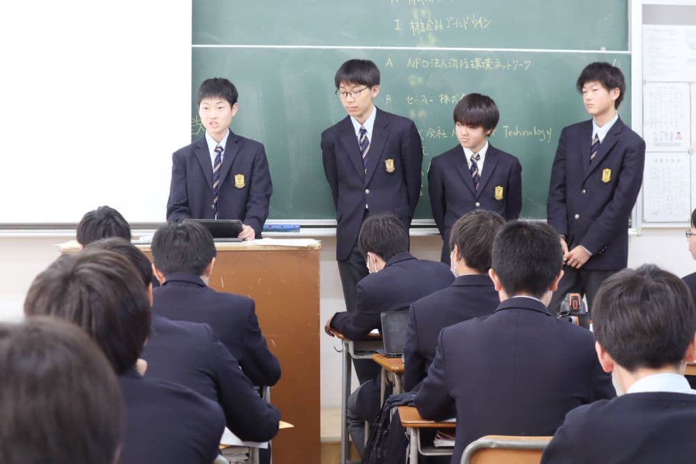 発表を聞く生徒たちはそれぞれのグループの発表を聞き、発表の振り返りをしました。