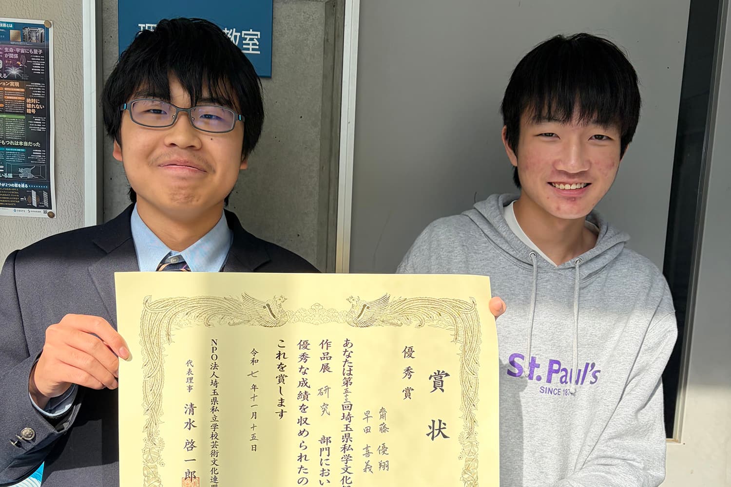 理科系4部(化学部、観測部、生物部、理科部)が、第53回埼玉県私学文化祭作品展「研究発表部門」(11月14日・15日@埼玉会館)に出展し、以下のとおり受賞しました。